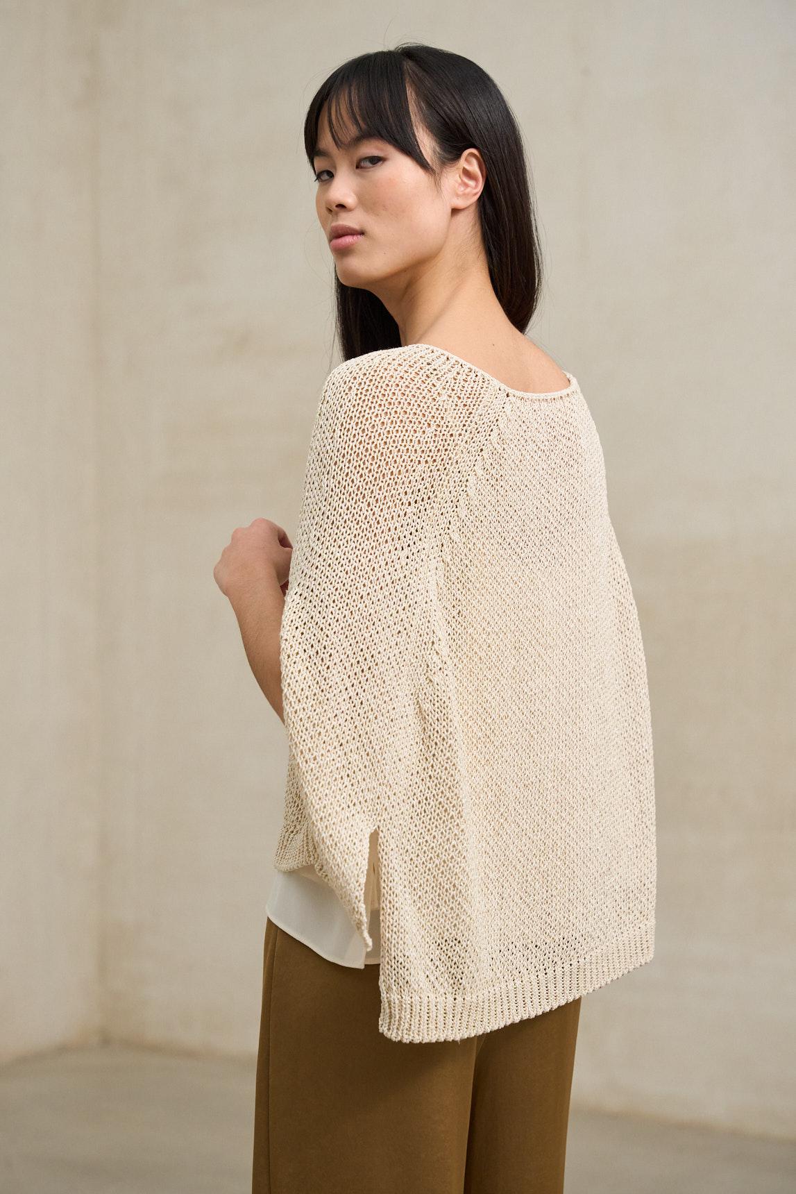 El jersey Calero en color beige destaca por su diseño relajado y contemporáneo, ideal para crear looks elegantes y naturales. Confeccionado en punto ligero de textura abierta, aporta una sensación fresca y cómoda, perfecta para los meses de entretiempo o verano. Su silueta amplia tipo capa y las mangas abiertas aportan movimiento y un estilo sofisticado sin esfuerzo. El tono beige neutro refuerza su versatilidad, permitiendo combinarlo fácilmente con pantalones fluidos, faldas o conjuntos casuales para un look minimalista y actual. Una prenda pensada para quienes buscan comodidad, ligereza y un diseño moderno que encaje tanto en estilismos urbanos como en propuestas más relajadas. Nos esforzamos por mostrar los colores lo más realistas posible. Pero el color puede variar ligeramente con la realidad.