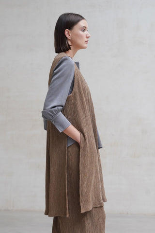 CHALECO LARGO PIEZAS LATERAL CAMEL