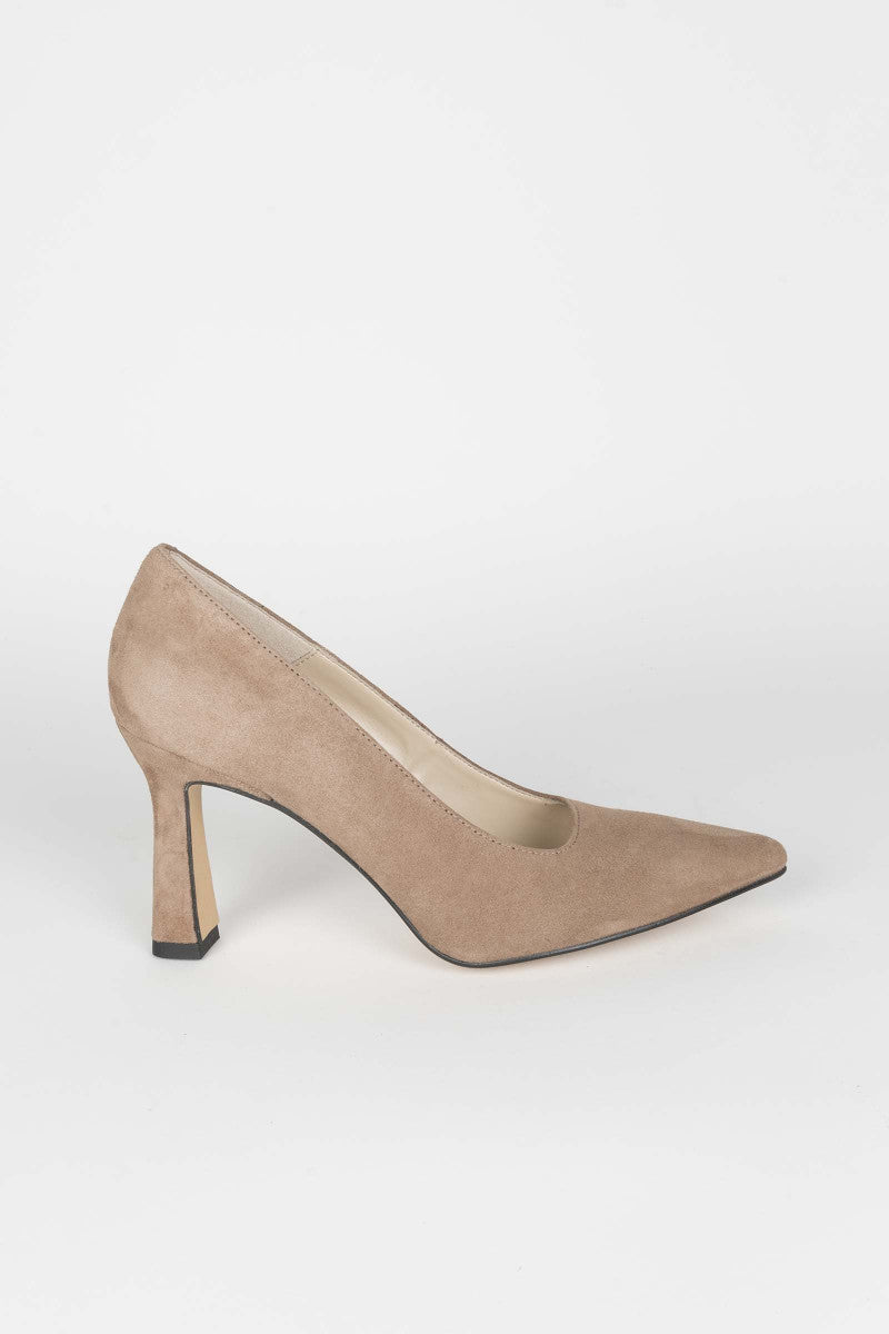 Explore classic sophistication with our taupe Diva pump from Rivera. Crafted from fine suede, these shoes feature a pointed toe. Their design adds an extra touch of glamour. Enjoy the ideal combination of style and comfort with this versatile and modern shoe.