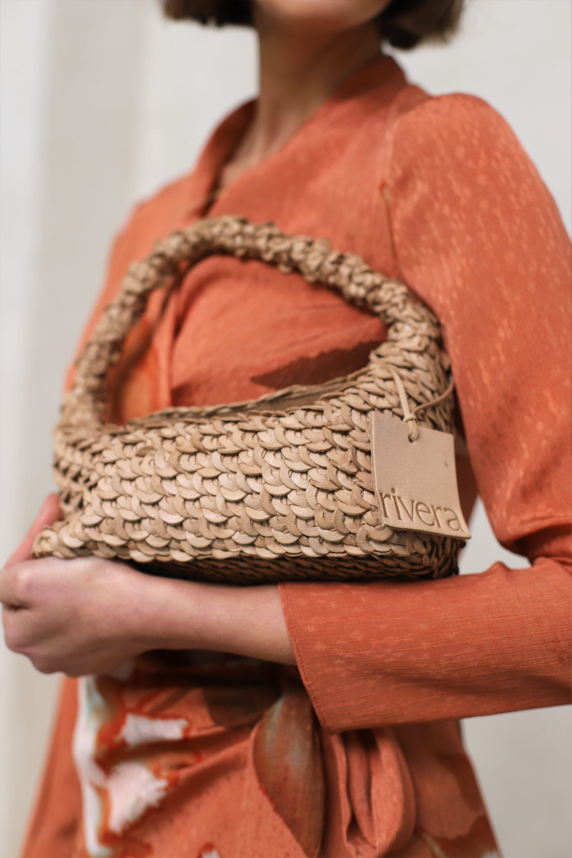 Su acabado artesanal y proporción equilibrada lo convierten en una pieza ligera pero con presencia. Incluye asa trenzada de mano y correa larga desmontable. Medidas de 10,5 x 9,5 x 4,5 cm y asa de 7,5 x 7,5 cm.