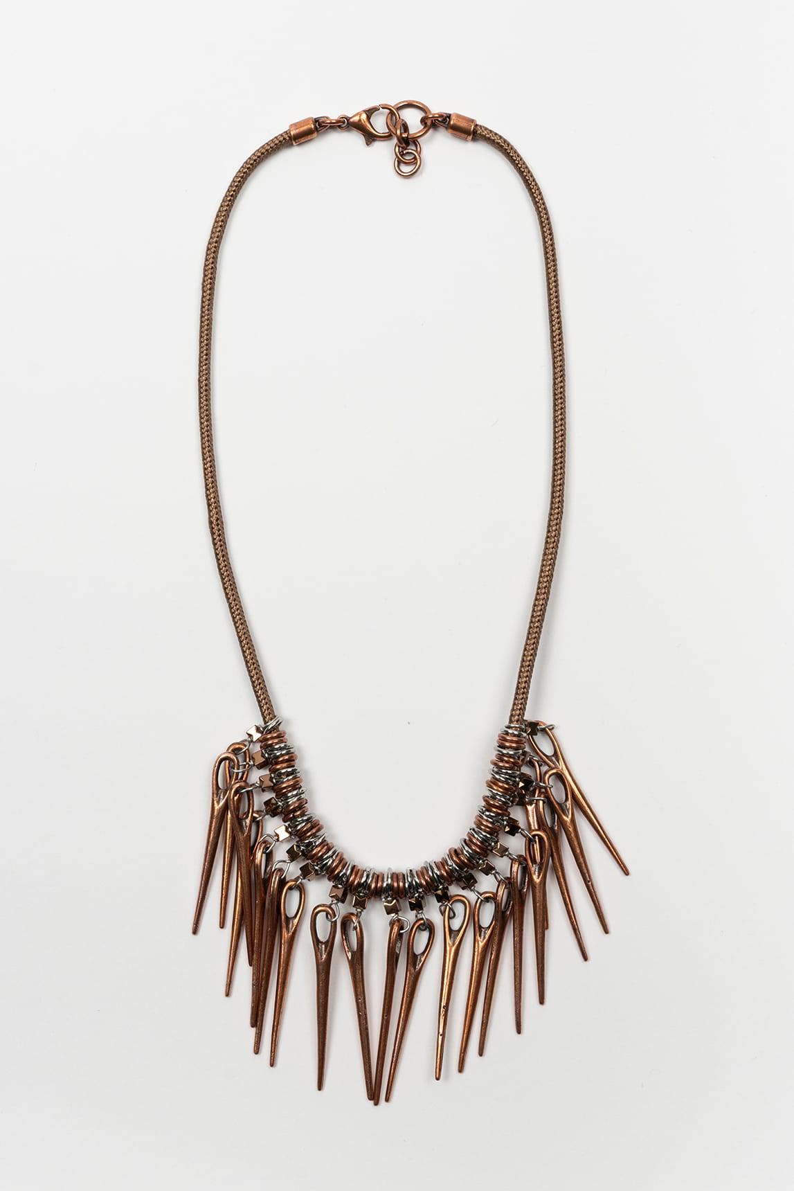 El collar Zerina en acabado cobre mantiene la misma silueta estructurada con base central texturizada y múltiples piezas alargadas en caída dinámica. El tono cobre aporta calidez y sofisticación, con un brillo sutil que realza la piel y armoniza especialmente con gamas tierra, beige, verdes oliva o negros intensos. La movilidad de sus piezas genera un efecto visual fluido que aporta personalidad sin resultar recargado. Ideal para estilismos minimalistas que buscan un punto diferenciador o para conjuntos bohemios con carácter. Nos esforzamos por mostrar los colores de la forma más fiel posible, pero pueden variar ligeramente respecto a la realidad.