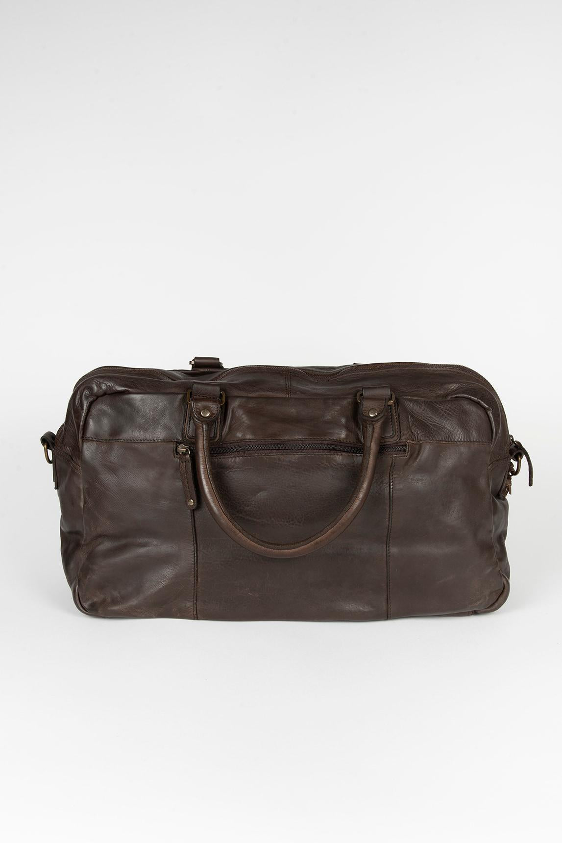 La bolsa de viaje Marta Ponti Roma está confeccionada en cuero natural de alta calidad, con un acabado suave y ligeramente envejecido que resalta el carácter auténtico del material. Su diseño clásico y elegante la convierte en una pieza ideal para escapadas de fin de semana, viajes cortos o para acompañar desplazamientos con estilo. El tono marrón oscuro aporta una estética atemporal y versátil, fácil de combinar con cualquier estilo. Dispone de doble asa de mano para un transporte cómodo y una correa ajustable y extraíble que permite llevarla al hombro o cruzada según la necesidad. Su amplio compartimento principal ofrece gran capacidad para organizar ropa y objetos personales, mientras que los bolsillos con cremallera facilitan tener a mano los elementos más importantes. Una bolsa resistente, funcional y sofisticada, pensada para quienes valoran la calidad del cuero y el diseño duradero. Nos esforzamos por mostrar los colores lo más realistas posible. Pero el color puede variar ligeramente con la realidad.