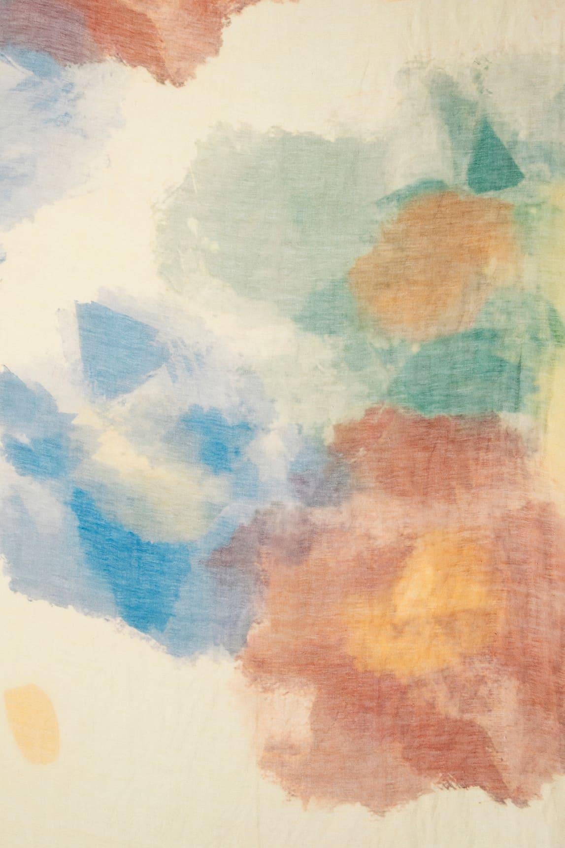 Lightweight scarf made of 70% linen and 30% cotton, with a natural texture and a very fluid drape. It features a watercolor-style print in soft, luminous shades of cream, blue, green, and warm tones that blend together for an artistic effect. Fine trims with subtle fraying add a relaxed finish. Expressive yet delicate, this piece is perfect for adding a touch of flair to a neutral look: wear it over a white shirt, with raw linen, or over light denim. Wear it loose, tied around your neck, or as a light shawl; it exudes freshness, creativity, and effortless sophistication. We strive to display colors as accurately as possible, but they may vary slightly from reality.