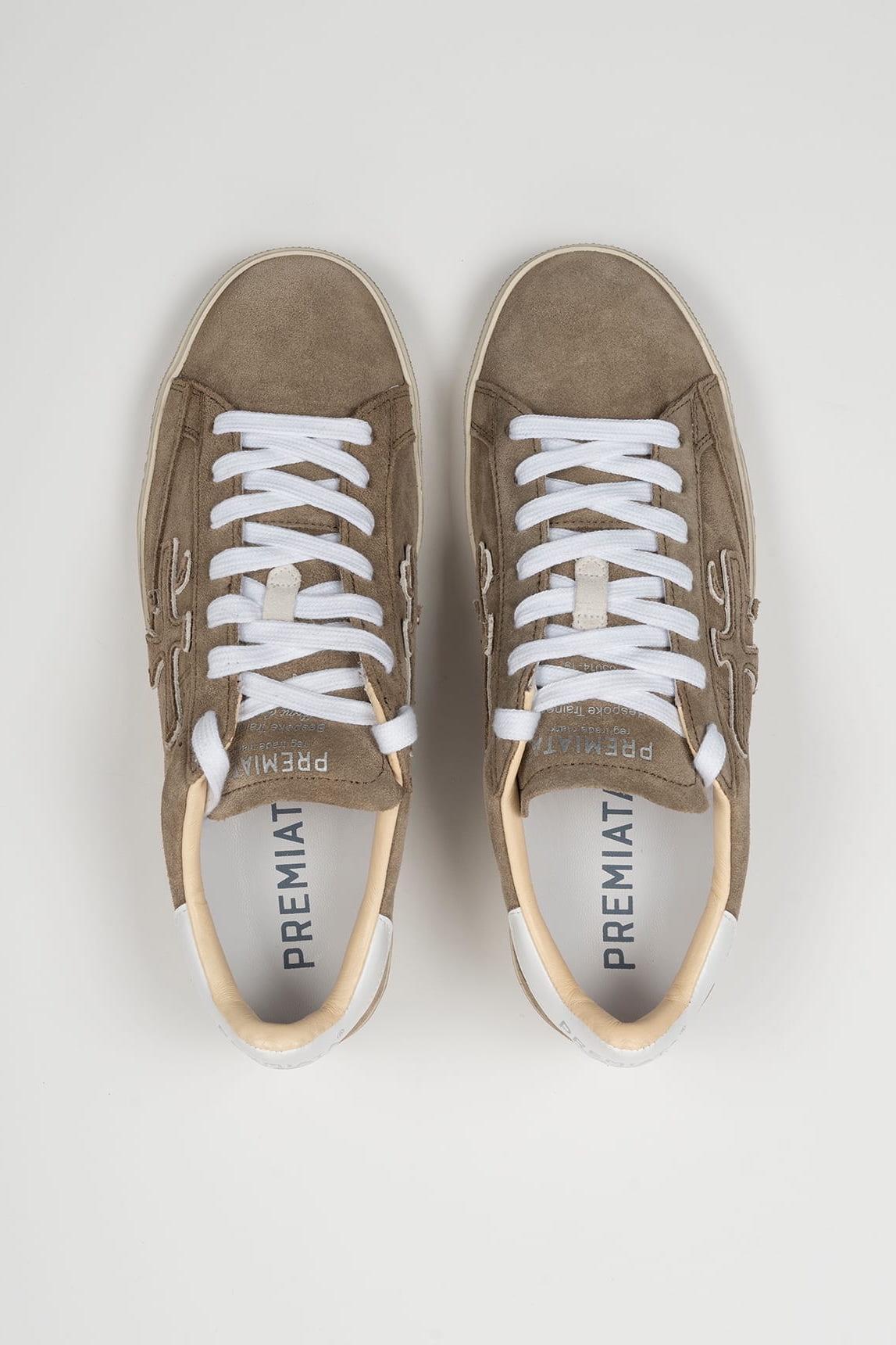 The Premiata Steven 6221 sneakers combine minimalist aesthetics and chromatic warmth in a sand beige suede version with contrasting details. Their clean, balanced silhouette lends a contemporary feel that fits easily into neutral wardrobes. The distinctive side logo and caramel-colored rubber sole reinforce their sporty identity with a refined touch. The lightweight design and comfortable interior make them an ideal choice for everyday wear. Perfect to combine with white, camel, light denim or monochromatic outfits, they provide a sophisticated touch without losing naturalness. We strive to display colors as accurately as possible, but they may vary slightly from reality.