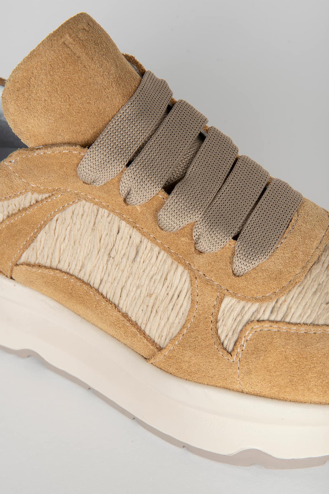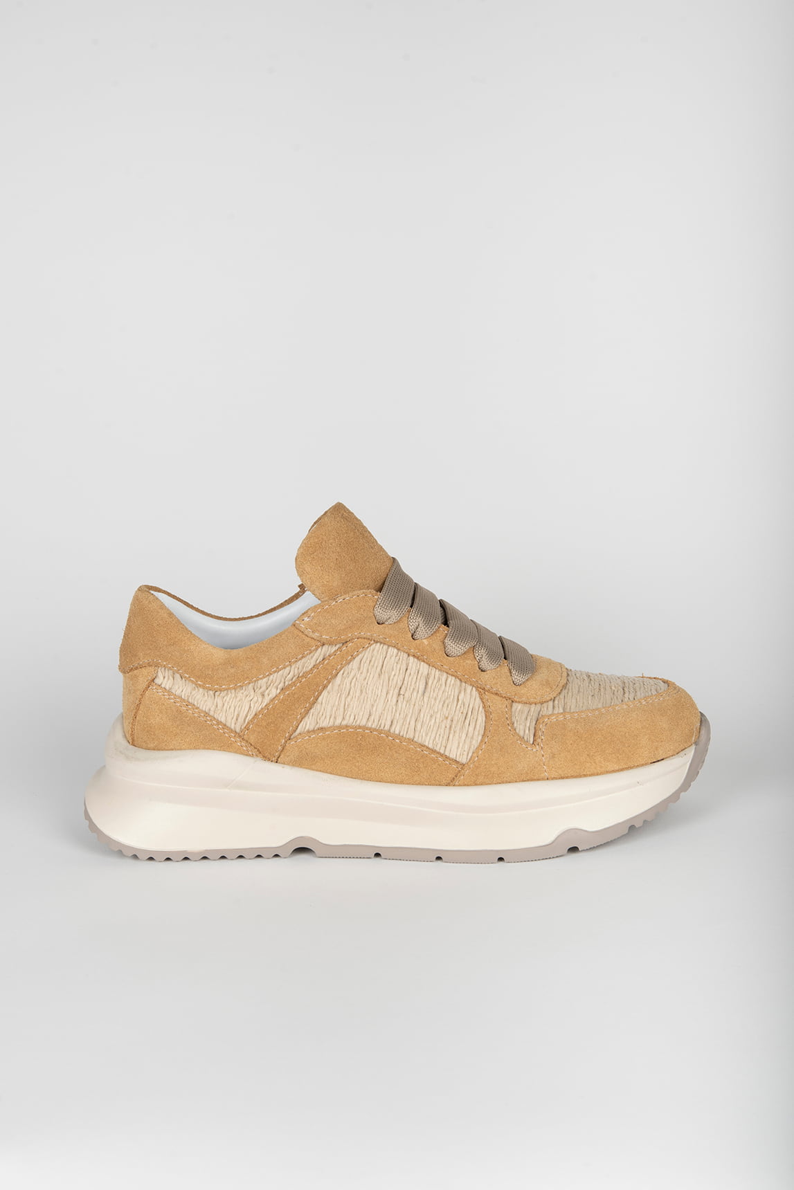 Rivera's Molveno sneakers fuse urban style and premium materials into a sophisticated sporty silhouette. Crafted from a blend of soft suede and jute panels in natural hues, they stand out for their contemporary, textured design. The voluminous, lightweight sole offers great comfort and cushioning, ideal for everyday wear. A modern, versatile sneaker with character, designed to elevate your most casual looks.