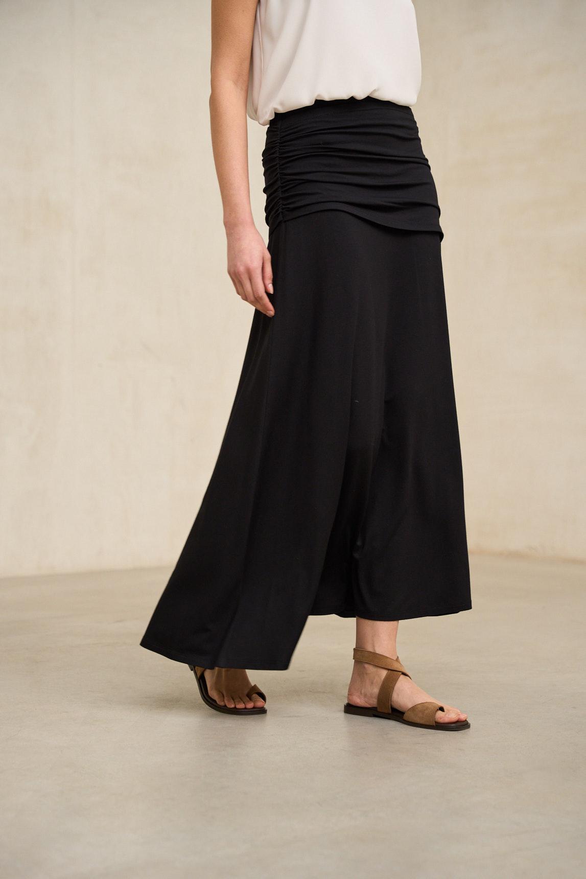 Saia de menina confecionada em malha fluida com drapeado na parte superior que cria um efeito envelope e realça a silhueta com elegância. Cintura subida com faixa larga e caimento natural que favorece a figura e proporciona movimentos fluídos. A saia preta Kaia é uma peça essencial que combina simplicidade e sofisticação. Perfeita para ocasiões especiais ou looks de noite, mas também fácil de combinar com peças básicas para um estilo moderno e elegante. Esforçamo-nos por exibir as cores da forma mais precisa possível, mas podem variar ligeiramente da realidade.