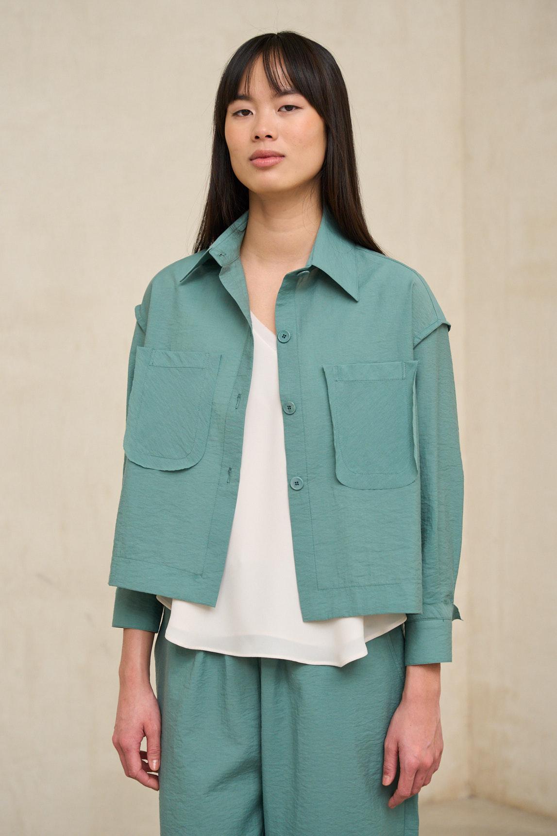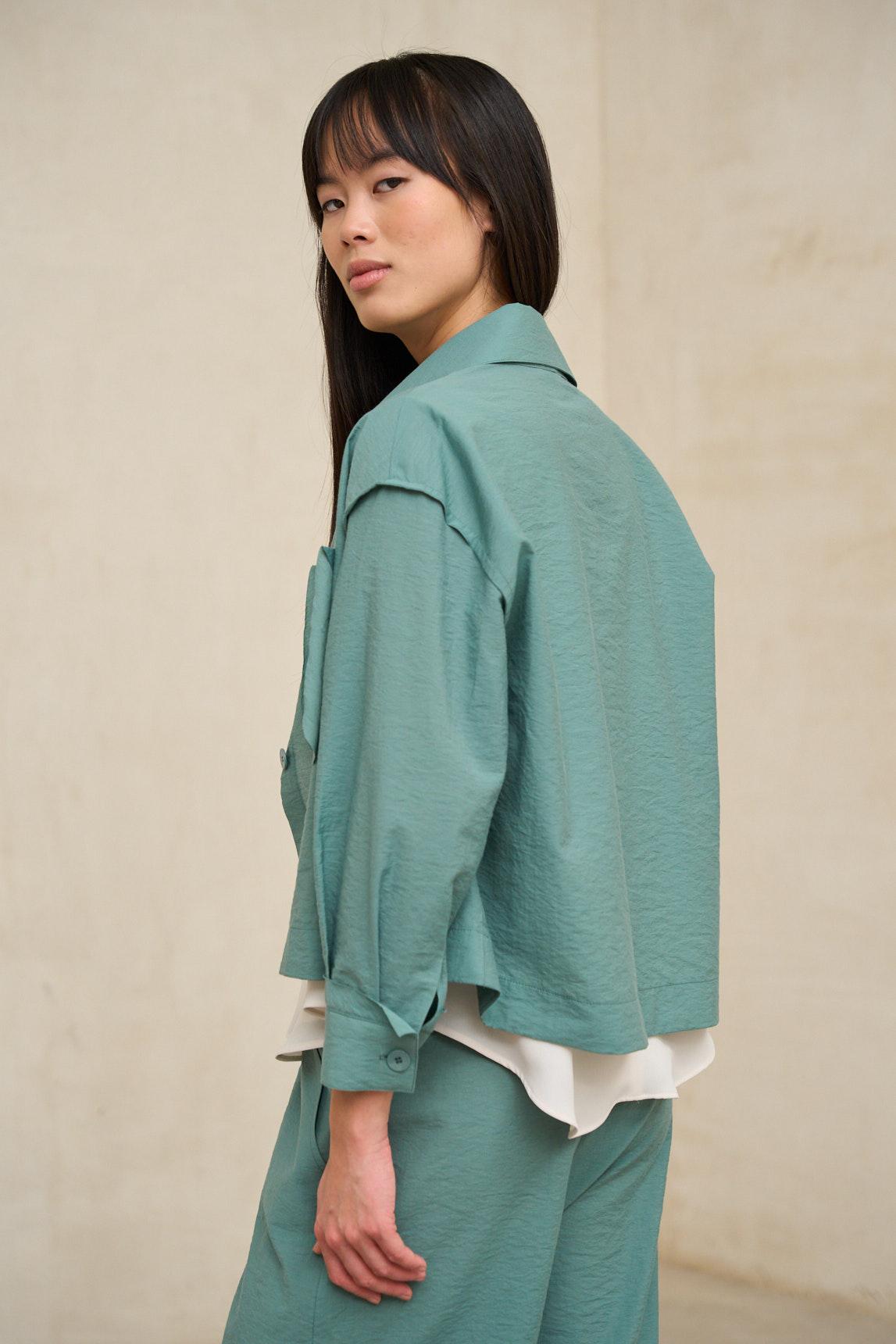 A camisa Turquoise Breeze é uma peça leve, de inspiração utilitária, reinterpretada com um toque contemporâneo. Confecionada em tecido suave e ligeiramente estruturado, apresenta gola de camisa, fecho frontal com botões e bolsos aplicados que oferecem funcionalidade sem sacrificar a elegância. A sua silhueta reta e descontraída permite que seja usada aberta ou fechada, funcionando como uma sobrecamisa ou uma camisa leve para a meia-estação. O tom turquesa acrescenta frescura e um toque natural, combinando facilmente com looks neutros ao lado de tons cru, off-white, areia ou terra. A camisa Brisa é uma peça versátil e intemporal que equilibra a praticidade com uma elegância descontraída. Ideal para complementar looks urbanos com calças de pernas largas, conjuntos coordenados ou jeans claros, acrescentando estrutura sem rigidez. Esforçamo-nos por exibir as cores da forma mais precisa possível, mas podem variar ligeiramente da realidade.