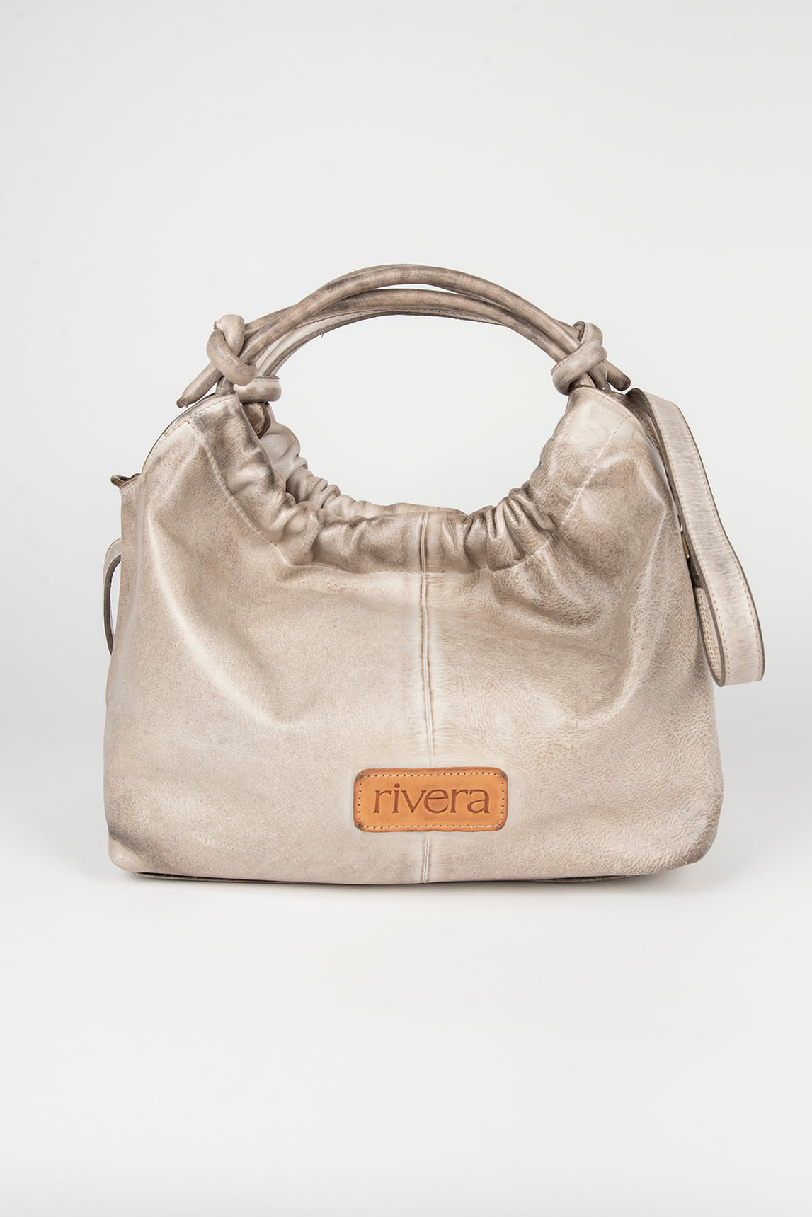 El bolso Alida de Rivera destaca por su diseño relajado y elegante. Fabricado en piel, combina textura y flexibilidad para ofrecer comodidad y estilo en una sola pieza. Su cierre fruncido y las asas con nudos le otorgan un carácter artesanal, mientras que su tamaño mediano lo convierte en un compañero perfecto para el día a día. Un accesorio que equilibra a la perfección sofisticación y naturalidad.