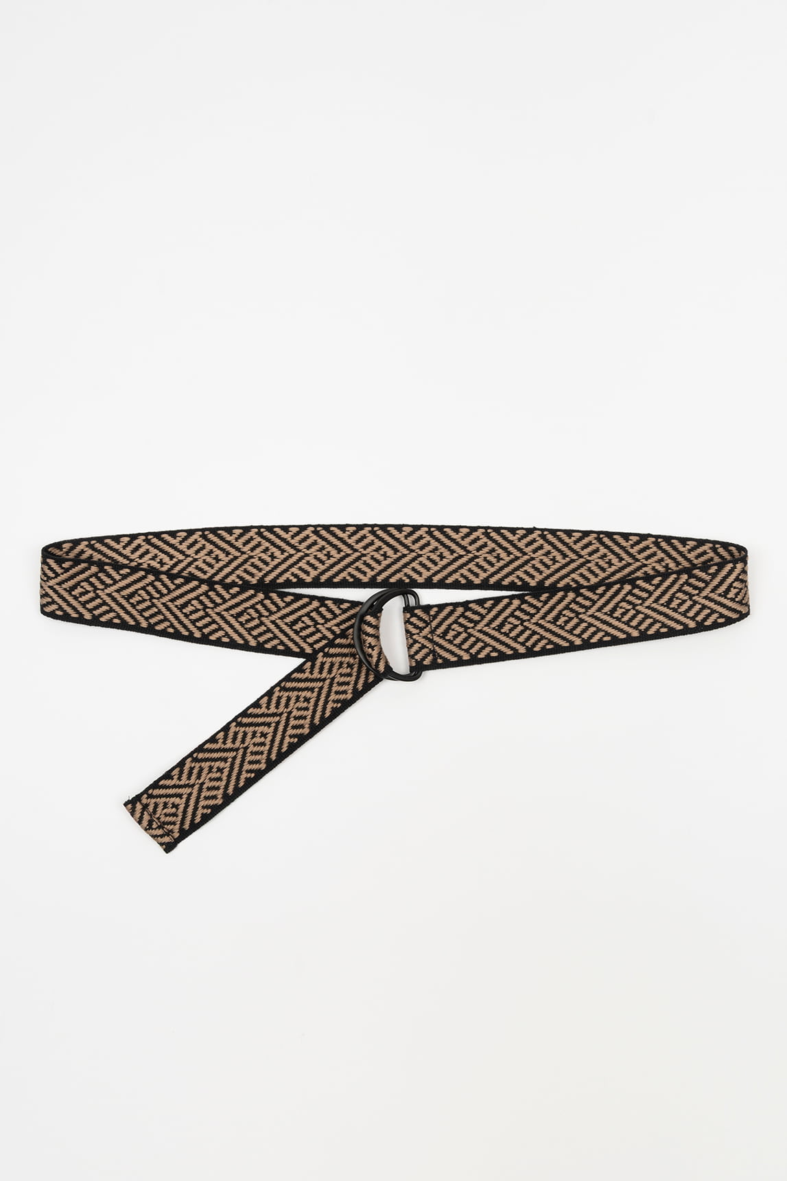 Adicione personalidade ao seu look com este cinto Rivera. O seu padrão geométrico bege sobre fundo preto cria um contraste sofisticado e contemporâneo, ideal para realçar looks simples ou valorizar estilos mais elaborados. O fecho em anel permite um fácil ajuste e utilização em diferentes alturas, adaptando-se a qualquer ocasião. Perfeito para destacar a sua silhueta com estilo, tanto no dia a dia como em eventos especiais.
