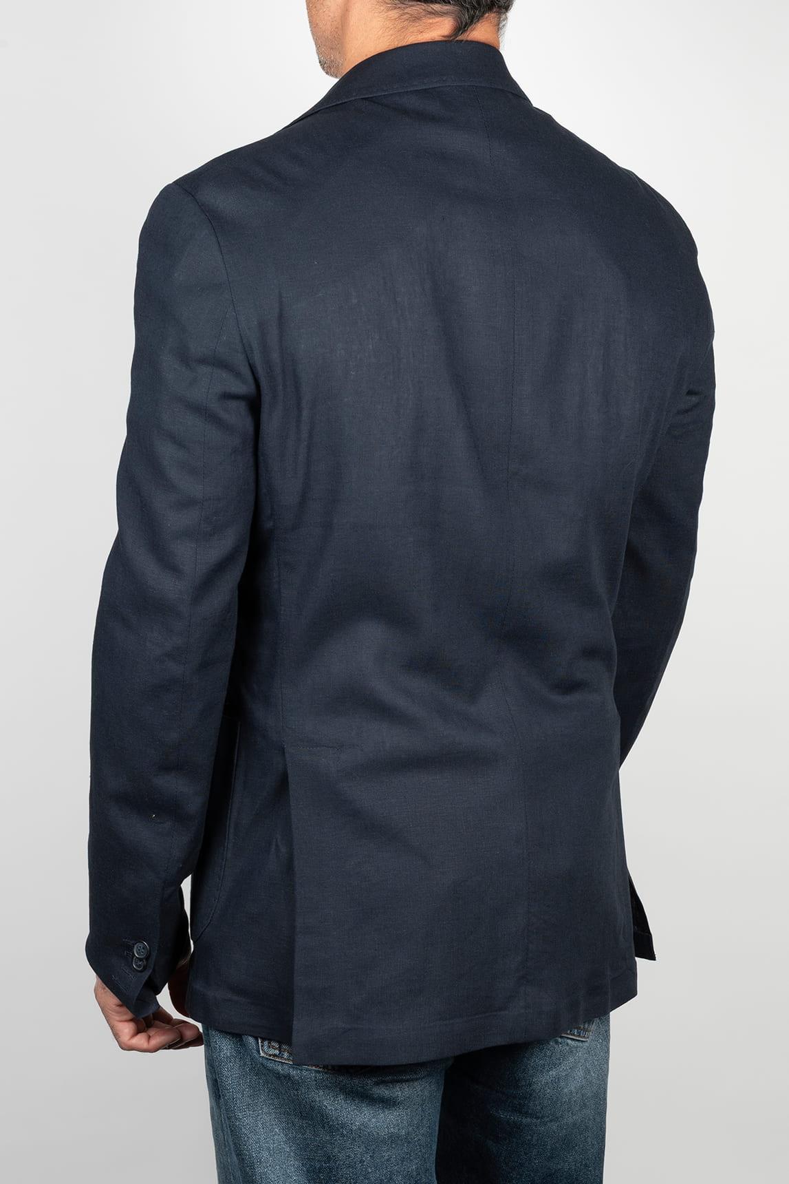 Americana de hombre en color azul marino con silueta recta y construcción ligera. El diseño incorpora solapa clásica, cierre frontal de dos botones y bolsillos de parche, manteniendo una estética limpia, equilibrada y muy actual. La superficie lisa refuerza una imagen sobria y pulida, pensada para aportar versatilidad y elegancia sin exceso.