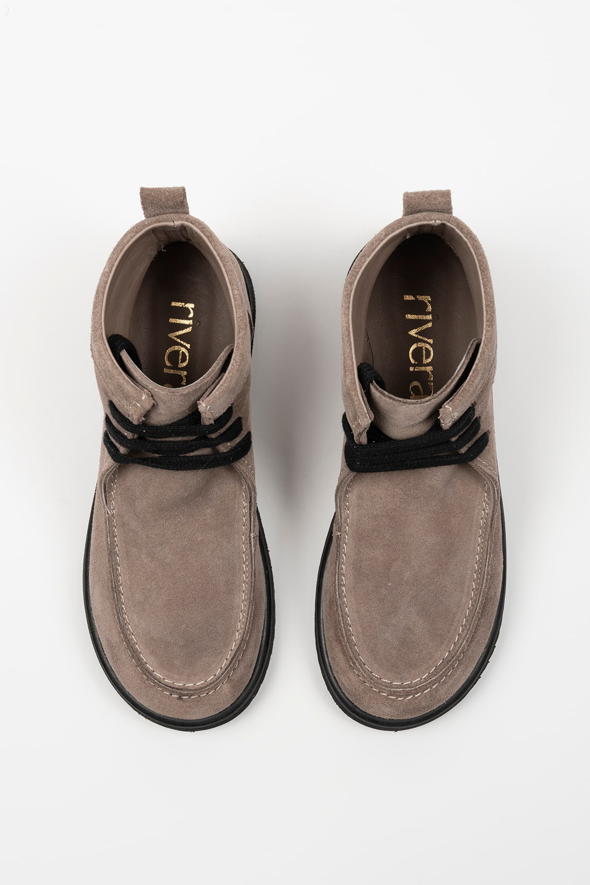 A bota Como, da Rivera, reinventa o modelo clássico de botas safari com uma estética urbana e contemporânea. Fabricada em camurça taupe suave ao toque, apresenta costuras decorativas e sola preta com fechos para contraste e personalidade. O seu design confortável e leve adapta-se a um estilo de vida dinâmico sem perder a sofisticação. Perfeita para a meia-estação e para os dias frios de inverno, vai tornar-se a sua peça versátil.