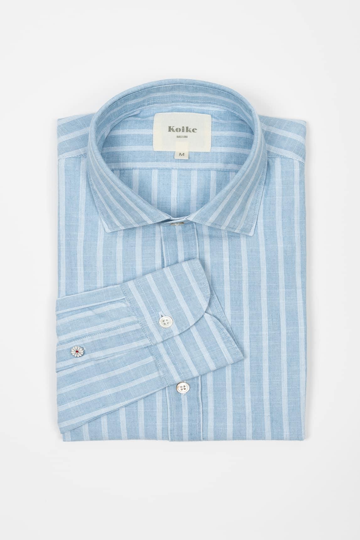 Koike blue shirt with white stripe