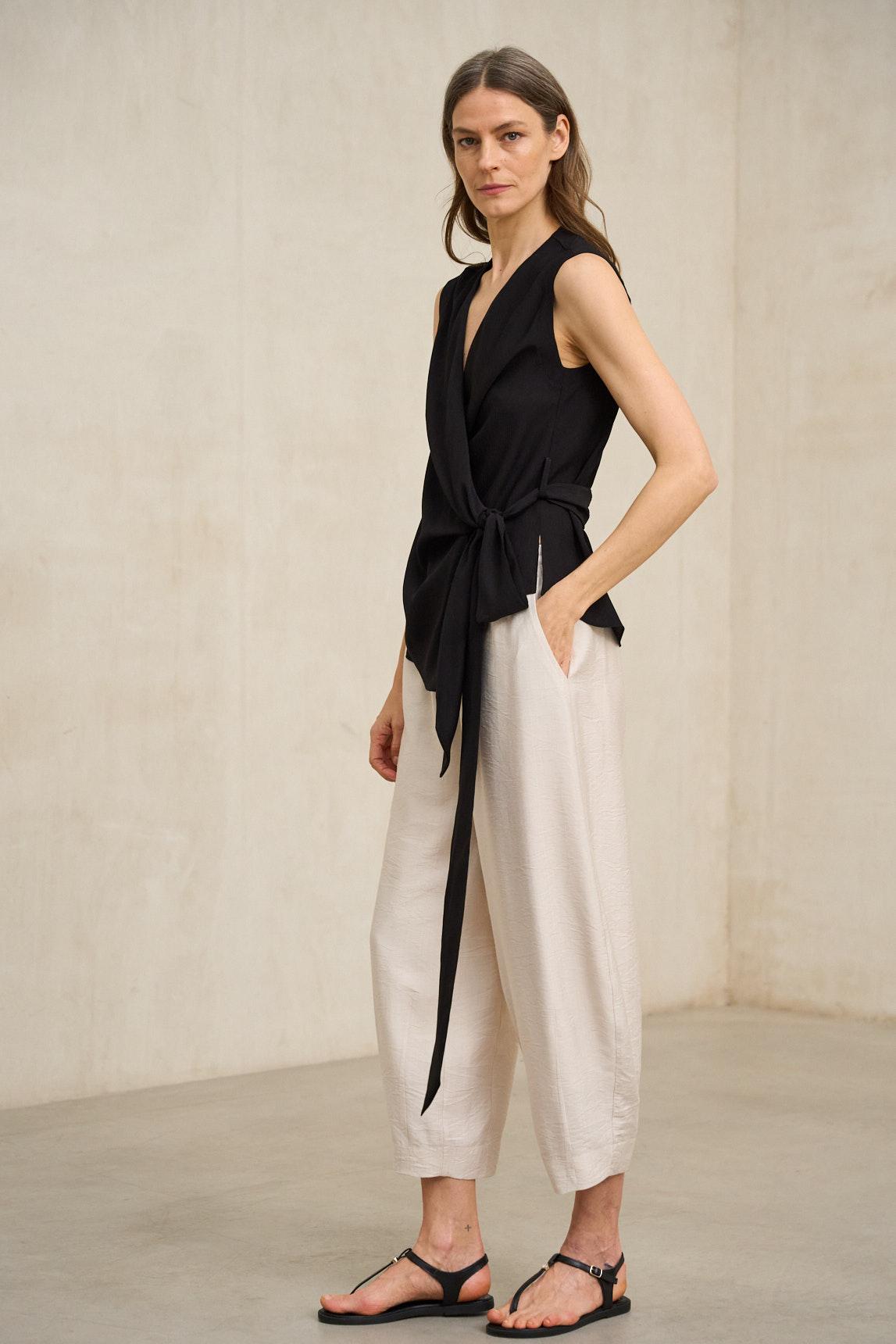 La Camisa Zarev negro interpreta el diseño cruzado en clave más sofisticada y rotunda. Su escote en pico y su estructura envolvente definen la silueta con equilibrio, mientras que la lazada lateral genera un efecto fluido y estilizado. El tejido ligero aporta movimiento sin rigidez, creando una caída elegante que funciona tanto en estilismos de día como en propuestas más formales. El negro refuerza su carácter atemporal y permite combinarla con pantalones amplios, faldas midi o looks monocromáticos de inspiración minimalista. Una camisa actual que combina diseño estructural y suavidad en una silueta favorecedora. Nos esforzamos por mostrar los colores de la forma más fiel posible, pero pueden variar ligeramente respecto a la realidad.