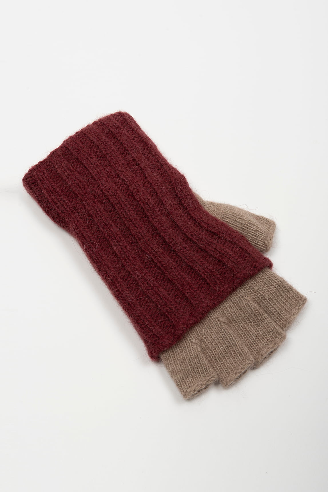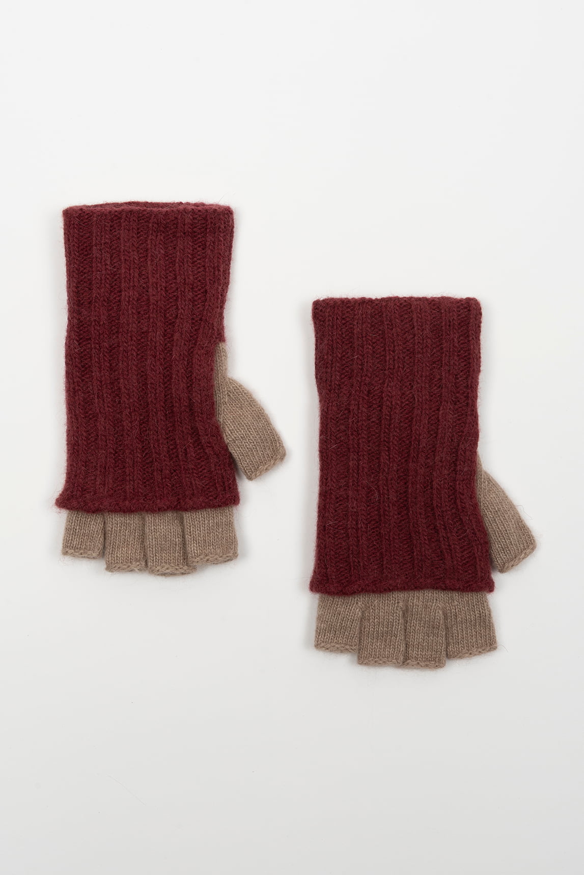 Guantes mitón Lotte burdeos y topo